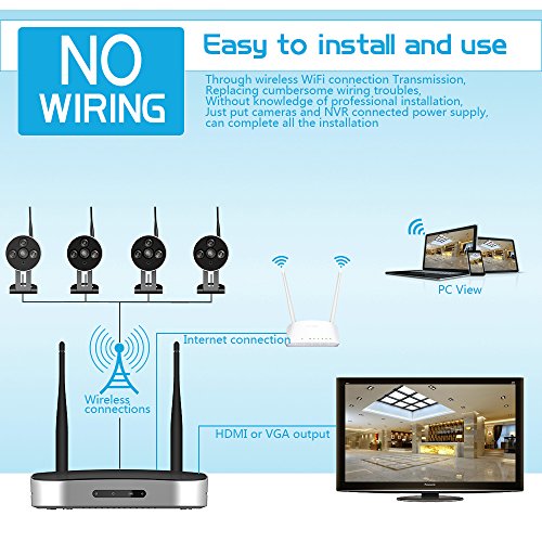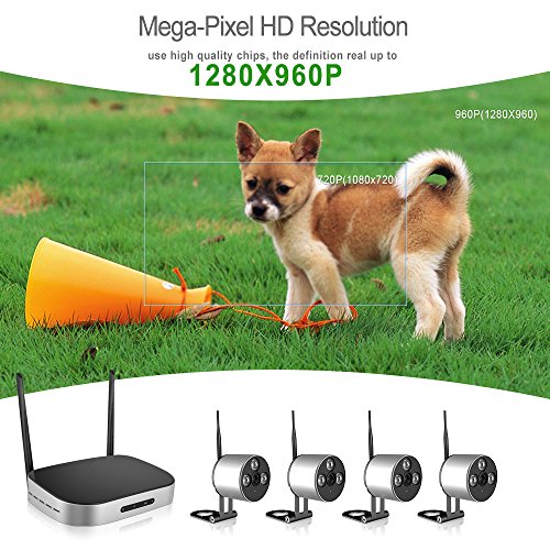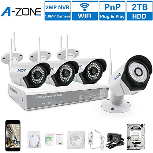 -. Title : A-ZONE 4CH 960P CCTV Security Camera System Wireless W/ Four 1280TVL 1.0-Megapixel Weatherproof IP Surveillance Camera Kit,, 65ft IR LED Night Vision