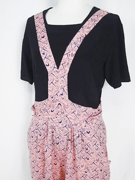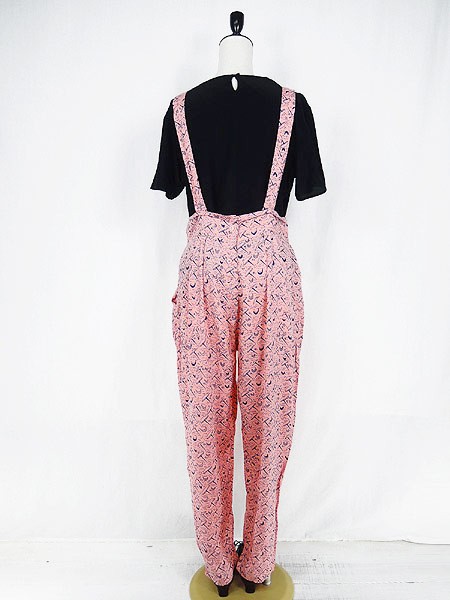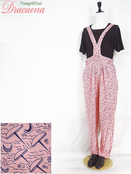 Ladies ブランド カラーピンク・黒 メール便不可 コンディション★★★ 素材レーヨン 表記サイズ11 スタッフコメントボタンにて肩紐の長さが調節可能です。(3段階) 実寸サイズ 着丈 136〜139 cm ウエスト 30 インチ( 76 cm) レングス(股下) 27 インチ(68 cm) 股上 41 cm (胸当て上から股まで) 太もも幅 35 cm 裾幅 18 cm ※ウエスト・ヒップ以外は平置き採寸