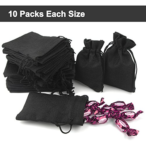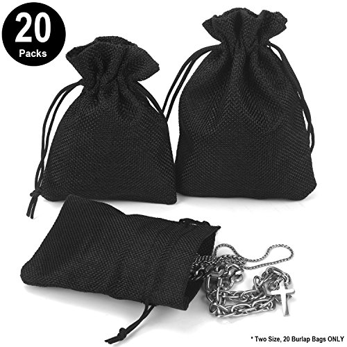 ADVcer Burlap Drawstring Bags Set, 5.5 x 4 and 4.8 x 3.5, Sacks 20 for Small Favor, Gift, Treat, Goodie, Party, Jewelry, Little Sachet, Coffee Bean, Mini Decor, Craft, Candy, Tea Storage (Black)