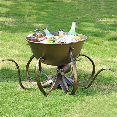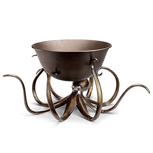 -. Feature : 14 1/2 Inches Tall, 29 1/2 Inches Long, 22 1/2 Inches Wide / Antiqued Bronze Finished Aluminum 17 Inch Diameter Bucket / Antique Bronze Finished Aluminum Octopus Stand / Excellent Detail / Makes A Great Gift