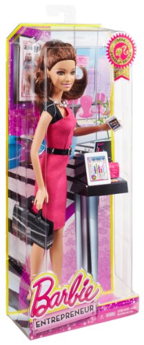 Barbie doll is ready to make a bold business move and strike out on her own to achieve her career dreams! Entering the entrepreneurial world, this independent professional is ready for the next big pitch. Barbie Entrepreneur doll wears a sophisticated dress in signature pink that features modern color blocking and a sleek silhouette. Her "smartphone," tablet and briefcase are always by her side. And luxe details, like a glam necklace, cool clutch and elegant hairstyle, add professional style statements for a smart, stylish professional. Includes Barbie doll wearing career fashion and accessories, clutch, briefcase, tablet and smartphone. Doll cannot stand alone. Ages 3 and older.Feature