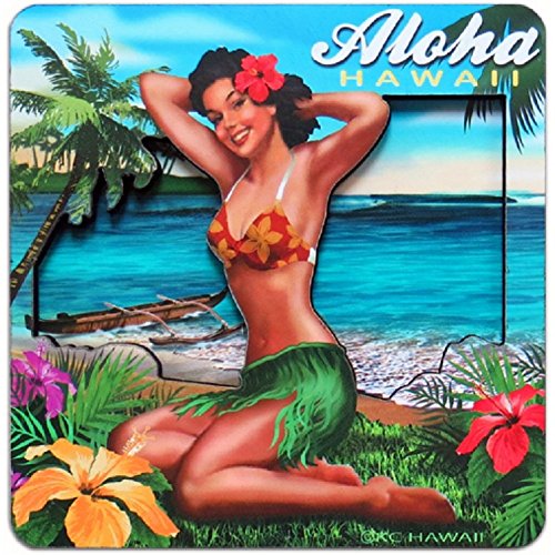 Hawaiian Pin Up Girl Posing 2D Wood Jumbo 3.5" Magnet