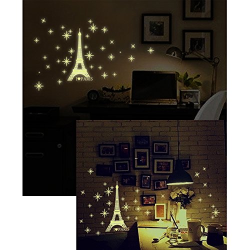 -. Title : Night Lighting Eiffel Tower Vinyl Wall Decal PVC Home Sticker House Paper Painting Decoration Wallpaper Living Room Bedroom Kitchen Art Picture DIY Murals Kids Nursery Baby Decor