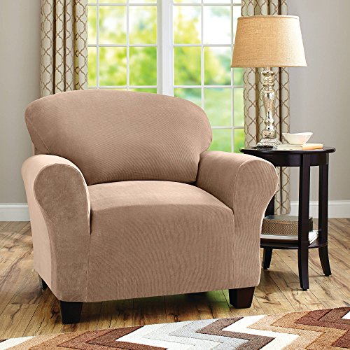 -. Binding : Kitchen -. Brand : Better Homes & Gardens -. Color : Brown Clay -. EAN : 0783120061440 -. Feature : Instantly updates any room Fits most chairs 32" to 43" (81 cm to 109 cm) Protects furniture against stains and pet hair / Machine washable to make life easier Made of 94% polyester and 6% spandex Patented construction -. IsAutographed : 0 -. Label : Better Homes and Gardens -. Manufacturer : Better Homes and Gardens -. PackageQuantity : 1 -. ProductGroup : Home -. ProductTypeName : HOME -. Publisher : Better Homes and Gardens -. Studio : Better Homes and Gardens -. Title : One-Piece Stretch Fine Corduroy Chair Slipcover, Brown Clay -. UPC : 783120061440