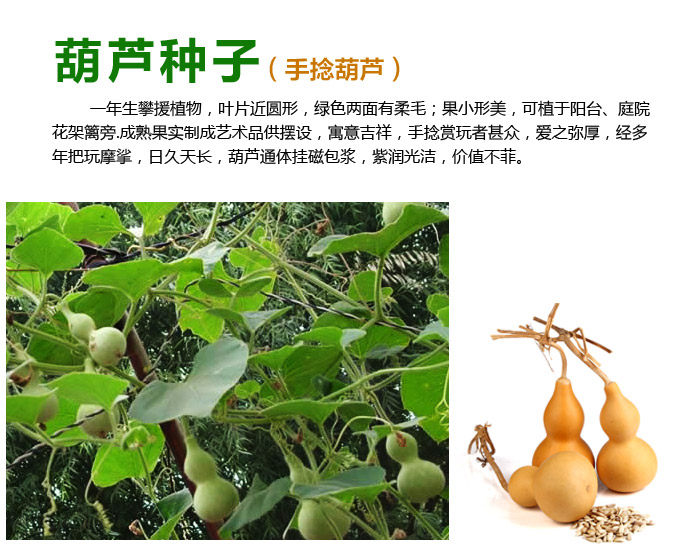 Hoist the drug itself. Gourd Sweet, smooth, non-toxic, and its spread, whiskers, leaves, flowers, sub-shells can be used as medicine to heal many diseases. According to ancient medical books hyacinth flower sweet, smooth, non-toxic, do drug detoxification, particularly effective against a variety of fistula sores. Hoist is thermophilic plants, seeds begin to sprout 15 ℃, 20 ~ 30 ℃ suitable temperature for the germination, 30 ~ 35 ℃ fastest germination, growth temperature for 20 ~ 30 ℃, 15 ℃ or less poor growth, stop growing below 10 ℃ below 5 ℃ began to suffer. Gourds are short-day plants, requiring a strong light, less disease under adequate light conditions.