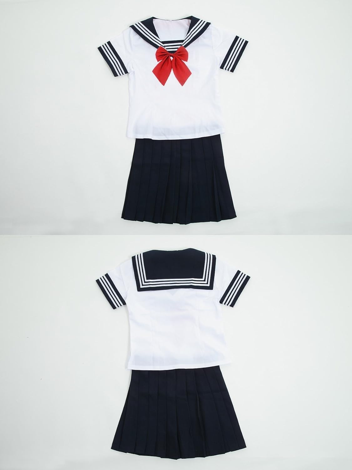 【セーラー服 半袖:リボン】デザイン2種 実在のセーラー服を本格志向のコスプレ用に改良しました 胸には可愛いリボン 清潔、清純な女子校生スタイルの雰囲気完成