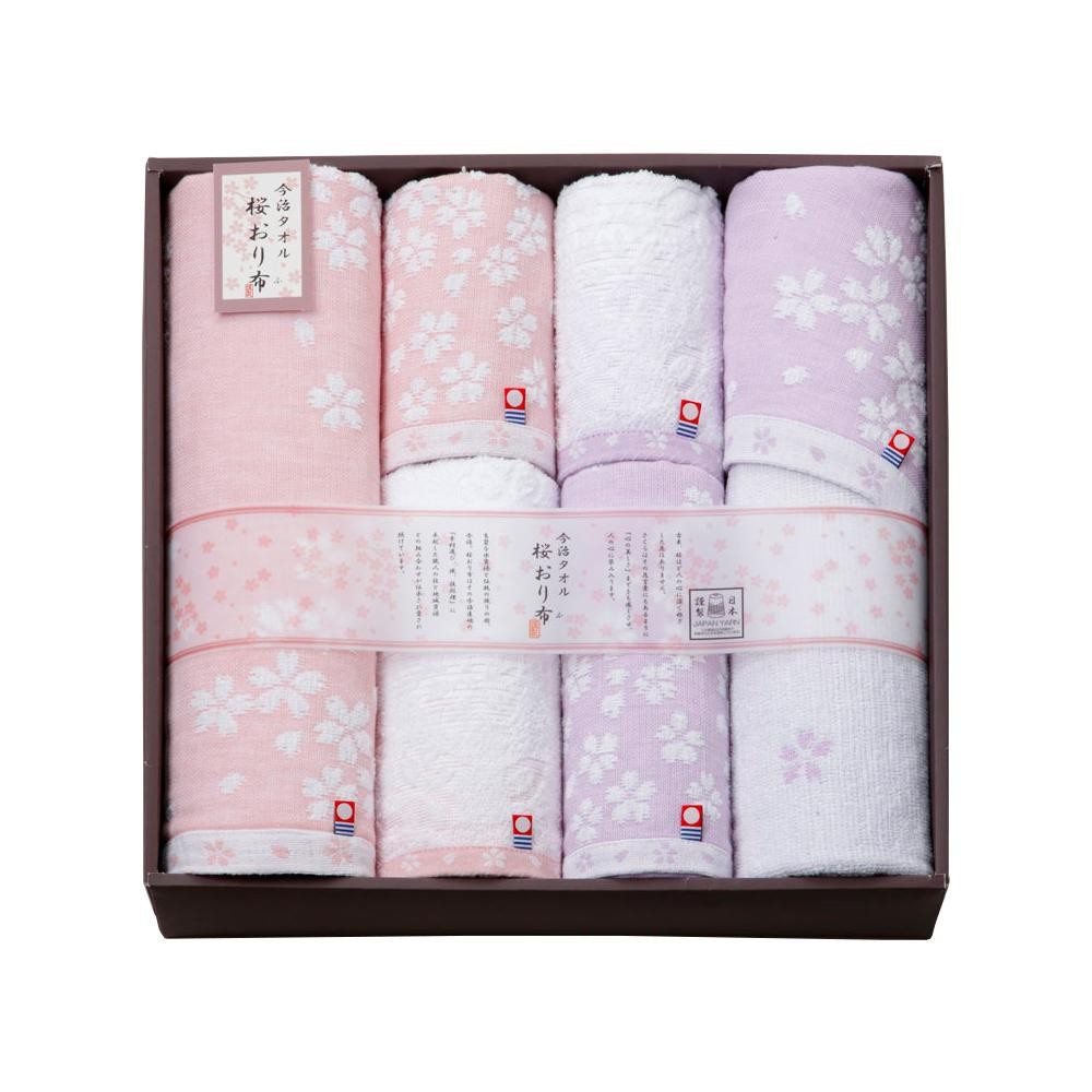 | 今治が得意とするジャガード織で美しい桜柄を織りあげた一品。 |