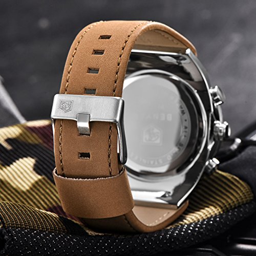 QUALITY LEATHER BAND : Quartz Movement, Scratch Proof Mineral Glass, Genuine Leather band bring comfortable and gentleman wearing experience.