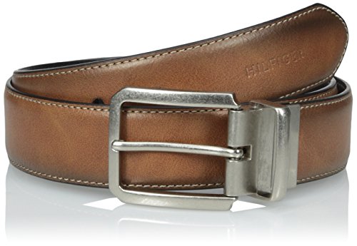 Tommy Hilfiger Men's 35 mm Feather Edge Reversible with Stitch Belt, Tan/Black,?32