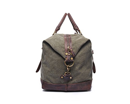 -. Feature : Zipper closure oversized duffel bag with adjustable strap, could be use as shoulder duffle bag, crossbody duffel bag, heavy duty duffel bag, travel tote duffel, duffle handbag / The big duffel bag provides a roomy interior that offers a considerable amount of storage space. Two inner wall zipped security dividers to store valuable items. Two open slots for your phone, ticket, or passport, could used in the weekend travel, daily travel ,short business travel, camp duffel bag, enough room for clothes and traveling necessities / Dimensions 21.7(L)14.8(H)10.2(W)inch, Large Capacity duffel bag- can be used as a carry-on flight bag, gym bag, travel bag. / men's duffel bag made by durable, light and soft canvas, top quality genuine crazy horse leather trim stitching handcraft, bottom rivets / HALF YEAR WARRANTY- Please contact us if you have any questions and problems, we will reply you as soon as possible, never over 24 hours