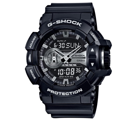 직관적인 작동을 지원하기 위해 슈퍼 터치 G-SHOCK에서 대형 로터리 스위치를 탑재한 NEW GA-400 컬렉션을 출시한다. 기본적인 G-SHOCK 블랙 디자인에 힙합 아티스트나 비보이 패션 아이템을 모티브로 하여 골드와 실버로 장식하였다. 또한, 액세서리와 함께 케이스, 밴드, 문자판에도 블랙과 골드 또는 실버를 더해 과감하고 세련된 디자인을 선보였다.