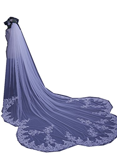 (Julang)/Accessories/Scarves/DIRECT FROM USA/Julang White Ivory Lace Edge Cathedral Length Wedding Bridal Veil Comb