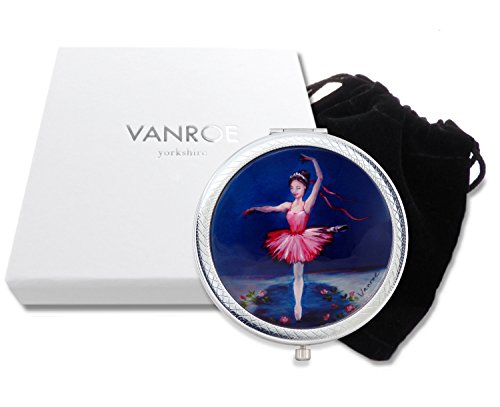 Vanroe 'Ballerina Princess' Designer Compact Mirror in Gift Box - For Teen Girl or Dancer, UK Artist, Magnified