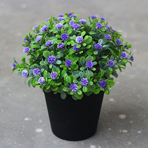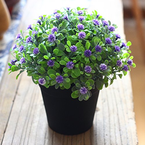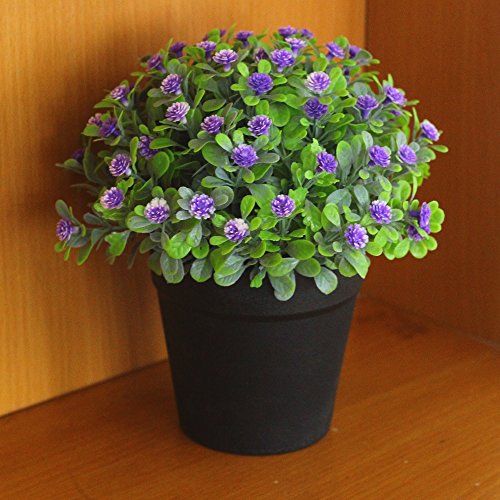 VGIA Small Artificial Plants for Home Decor Fake Flowers in Pot Lovely Decoration (Purple)