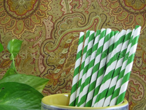 CleverDelights Biodegradable Paper Straws - Green Stripe - Box of 100