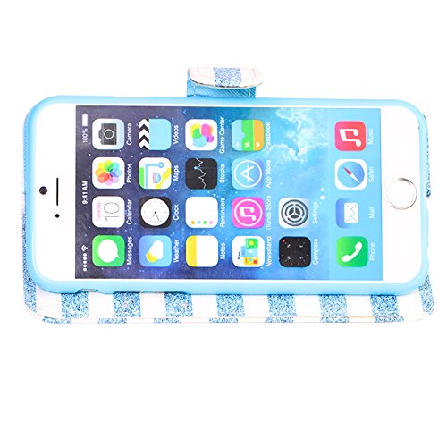 iPhone 6S Wallet Case, Dimaka Cute Folio Case [Designed Line Pattern] with Credit Card Holders and Flip Kickstand for iPhone 6S­ (Crystal Stripes)