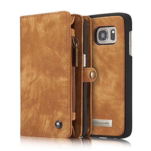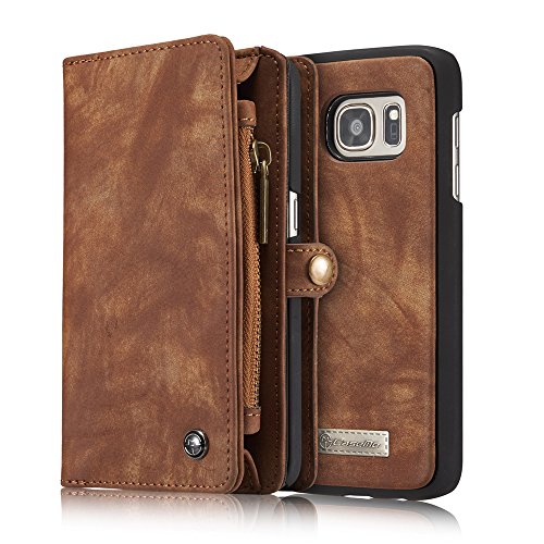 Galaxy S7 Case,S7 Wallet Case,AKHVRS Handmade Genuine Cowhide Leather Wallet Cover Case - Large Capacity Leather Wallet Type Case with Zipper Wallet Case for Samsung Galaxy S7 (Brown)