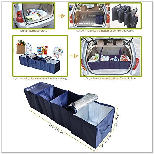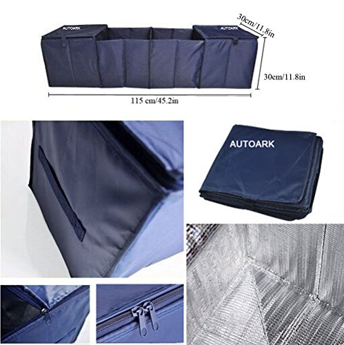 Autoark AK-009 Navy Blue Foldable Multi Compartment Fabric Car Truck Van SUV Storage Basket Trunk Organizer and Cooler Set