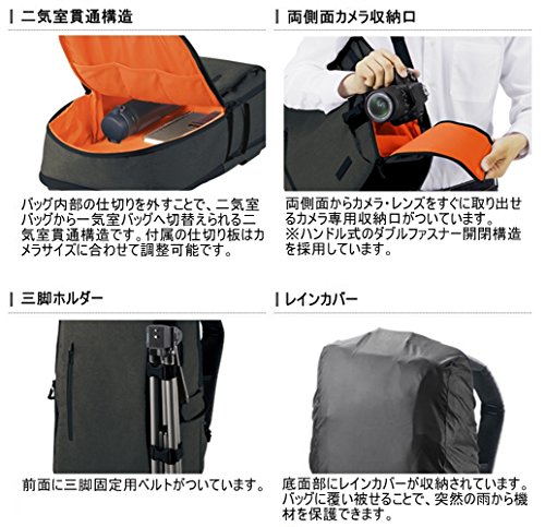 ◆大容量かつ、すぐに取り出し可能な充実した収納口を配置。1ランク上の機能を搭載したハイグレードモデル。◆付属のカメラインナーケースを取り外すことで、通常のバックパックとして普段使いできる2STYLEカメラバッグ / ※参考収納寸法をお確かめの上、ご購入ください。