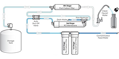 Includes 50 gallon per day reverse osmosis element Installed under the sink Water on demand delivered from a 2.8 gallon storage tank Automatic shut-off valve helps conserve water Reduces salts, dissolved minerals, bad taste and odor Designed for chlorinated and non-chlorinated water Reduces particles as small as 1/1000 of a micron in size by mechanical means NSF/ANSI Standard 58 certified to reduce cysts such as Cryptosporidium and Giardia by mechanical means