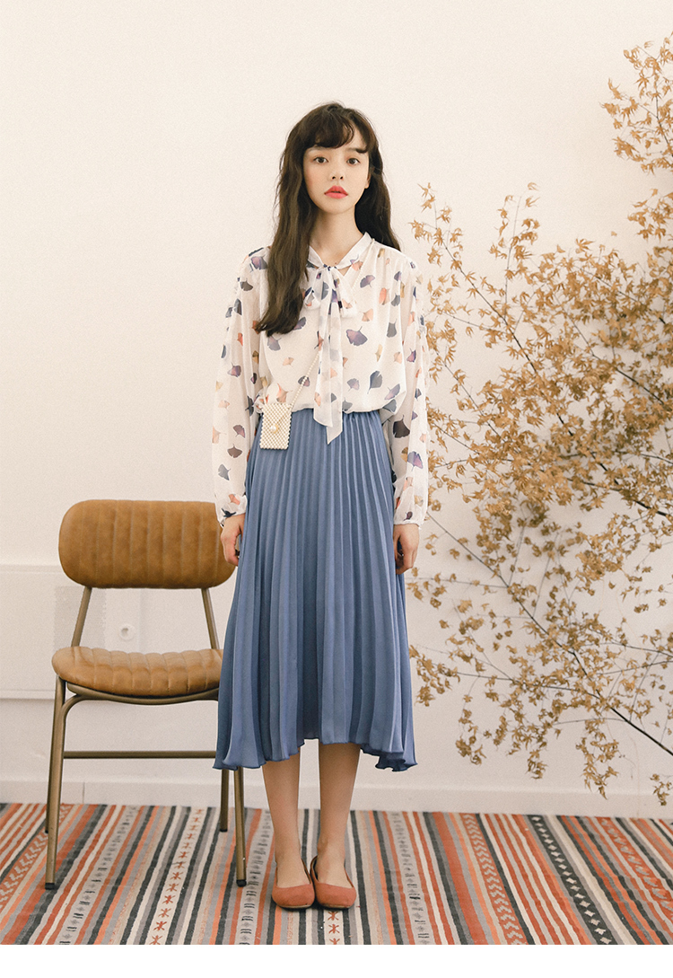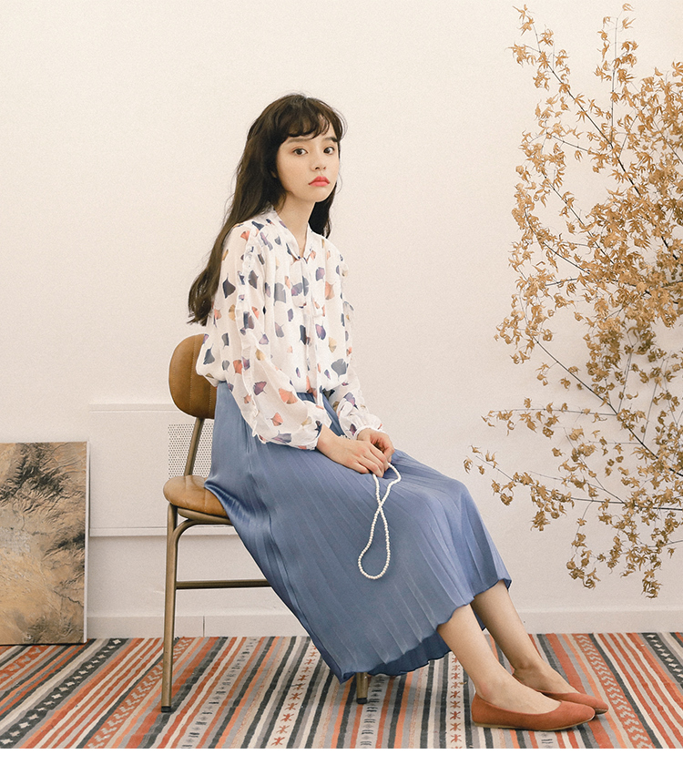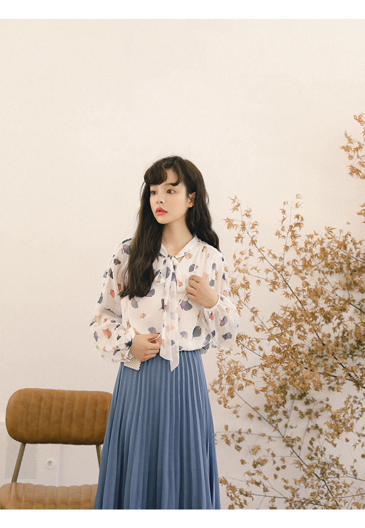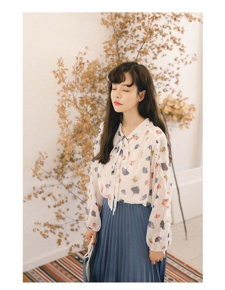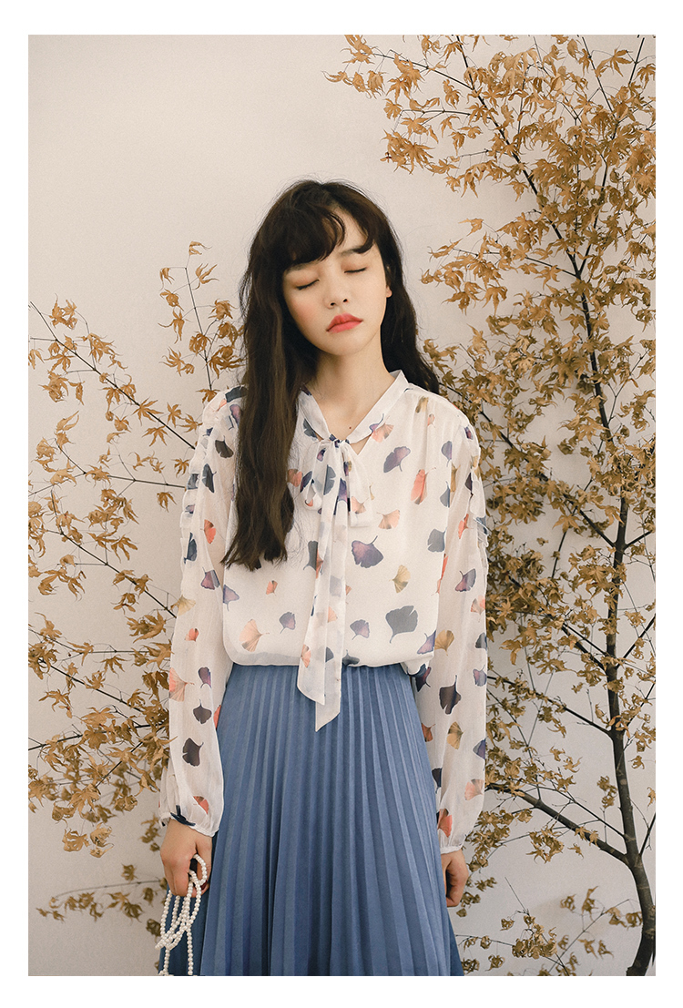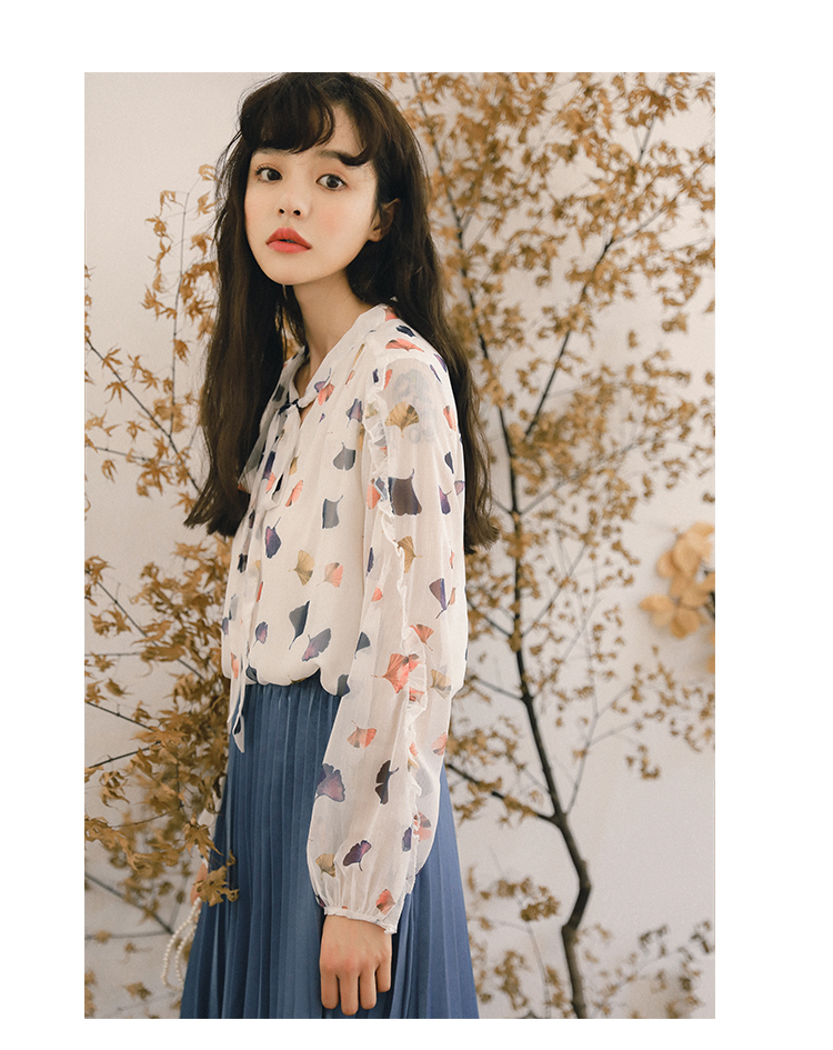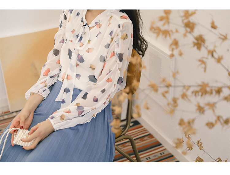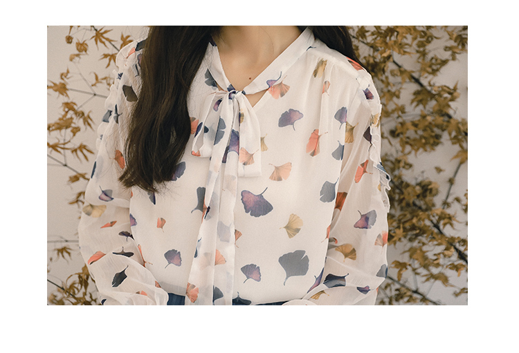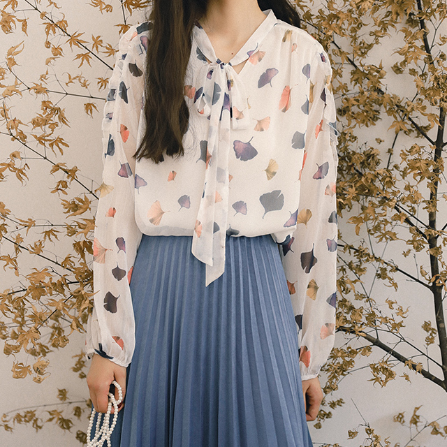 ふんわりとした生地と透け感が大人っぽく女性らしい雰囲気の、長袖シフォンシャツです。