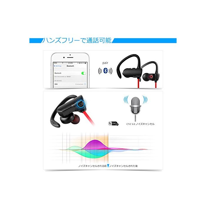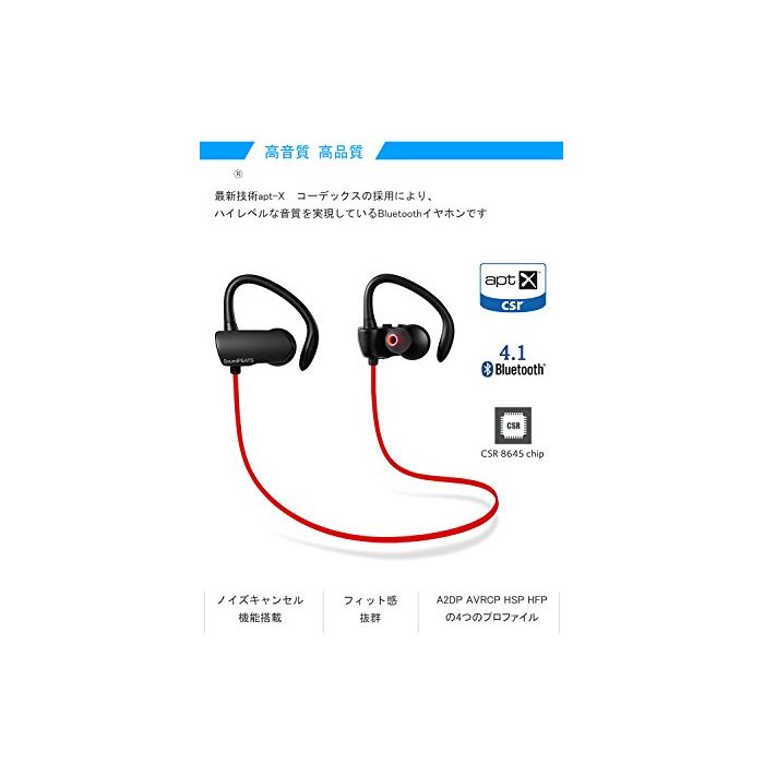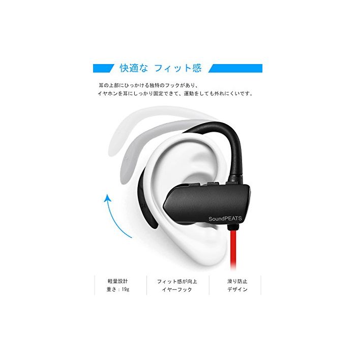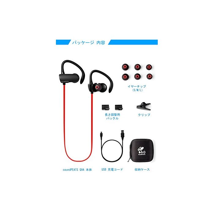 SoundPEATS【메이커 직판 / 1년 보증이 붙어 있음】개량판Q9A Bluetooth 이어폰 APT-XCODEC《스》채용 밸런스 좋은 음질 수와 땀에 강한 스포츠 사양 wire