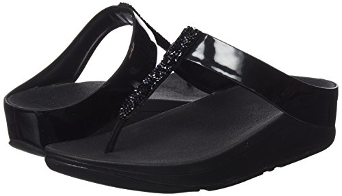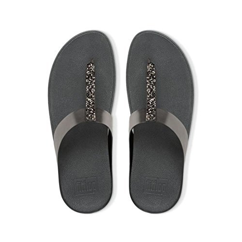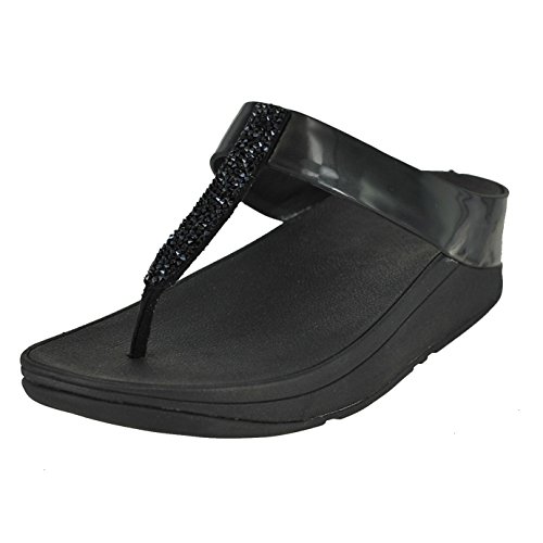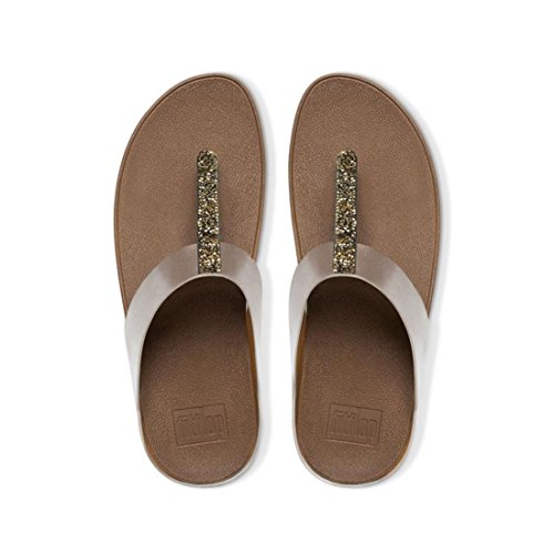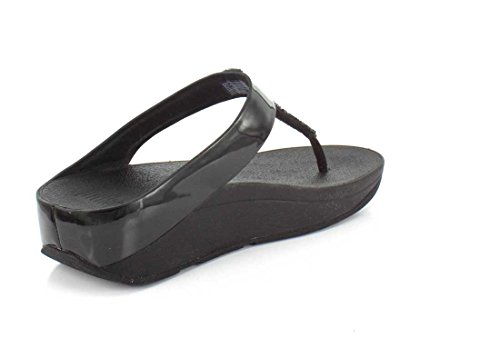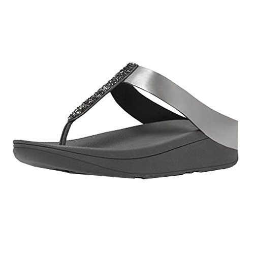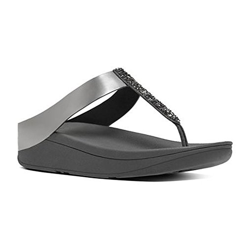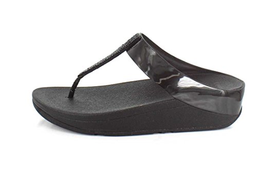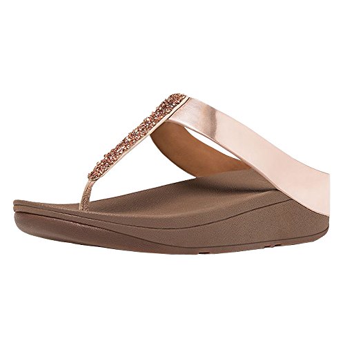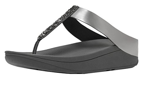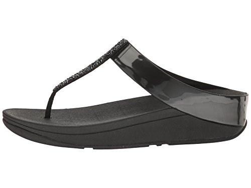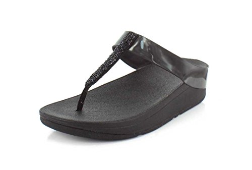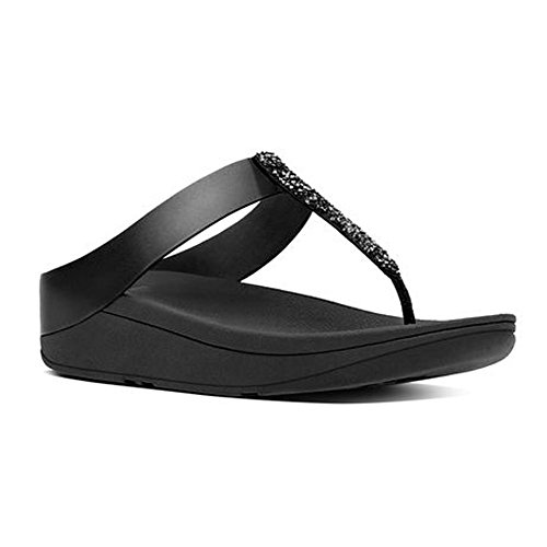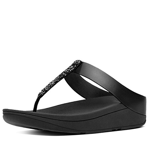 Product Description Women's FitFlop?, Fino Toe Post? Sandals A sleek and pretty summer sandal! Leather upper with rhinestone accents Slip on style for an easy on and off Microwobble technology midsole helps diffuse underfoot pressure and absorbs shock 1 3/4 inch wedge heel Rubber outsole. Heel Height of 1.75 inches 0