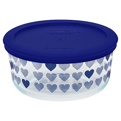Pyrex Simply Store 4 Cup Blue Hearts Storage Bowl with Lid