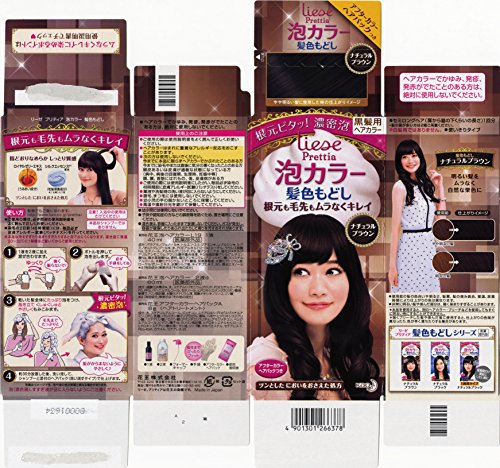 -. Binding : Health and Beauty -. Brand : Prettia -. Color : Brown -. EAN : 4901301266378 -. Feature : This product comes in hair solution (60ml) hair dye solution (40ml) and hair conditioning (8g). / | IMPORTANT NOTICE | Made for Japan market and in a Japanese retail package. Manual(s) is in Japanese only. -. HazardousMaterialType : Unknown -. IsAdultProduct : 0 -. Label : Kao -. Manufacturer : Kao -. MPN : 4901301266378 -. PackageQuantity : 1 -. PartNumber : 4901301266378 -. ProductGroup : Beauty -. ProductTypeName : HEALTH_PERSONAL_CARE -. Publisher : Kao -. Studio : Kao -. Title : Kao | Liese Prettia AWA Hair Color KAMI IRO MODOSHI | Natural Brown