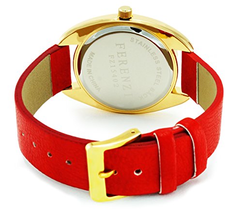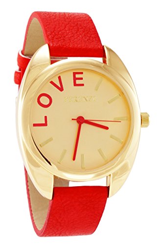 Ferenzi Women's | Elegant Gold Tone Case LOVE Watch with Red Band | FZ15402