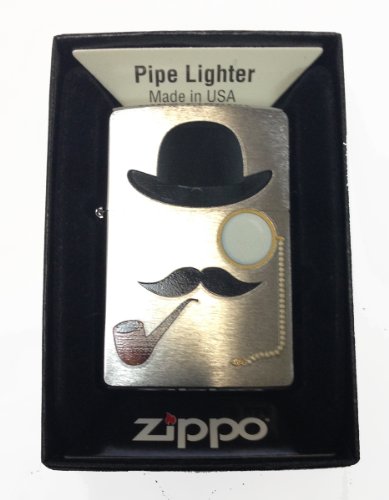 -. Title : Zippo Custom Lighter - Smoking Man w/ Top Hat, Pipe, Eye Glass & Mustache Rare!