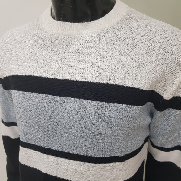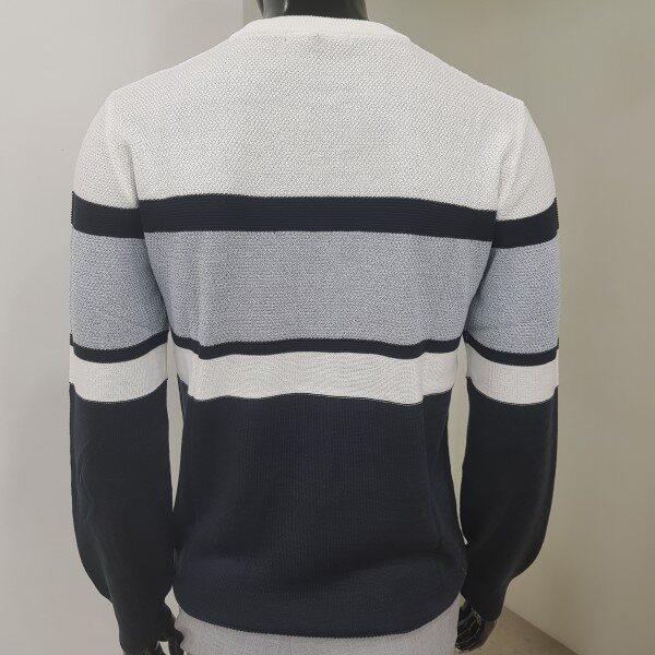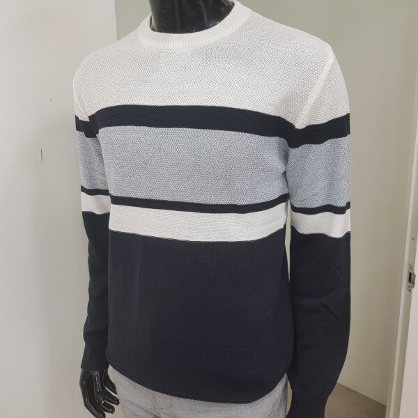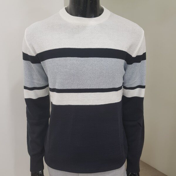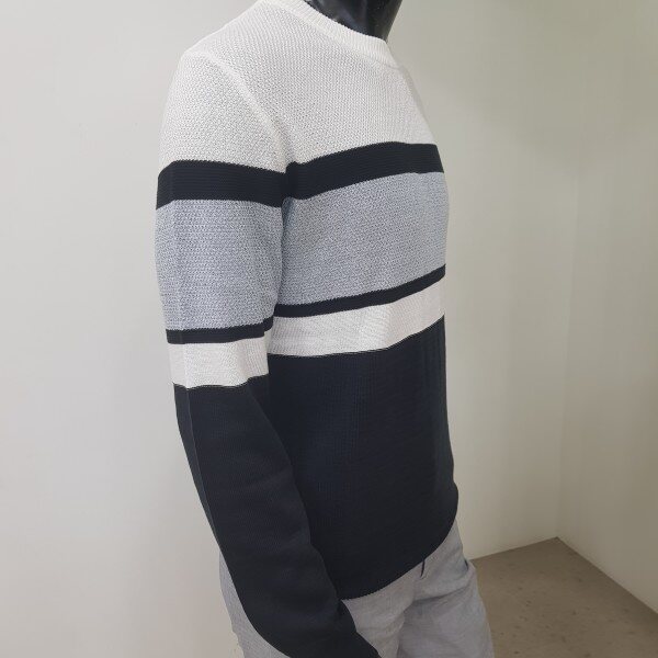 2018년 겨울 신상 남성 허니컴 블럭 라운드넥 스웨터 입니다. 양두조직과 허니컴조직의 서로 다른 조직감의 심플한 절개 포인트를 주어 깔끔한 코디가 가능한 라운드넥 스웨터입니다.