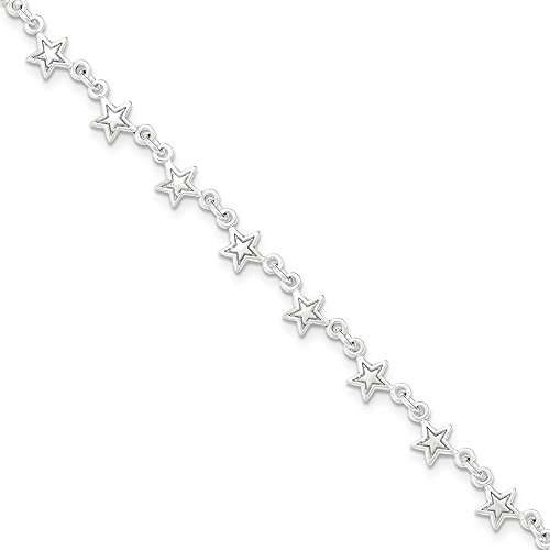 -. Title : Genuine 925 Sterling Silver Polished w/1in. Ext. Star Anklet With Lobster Clasp Length 9 Inch