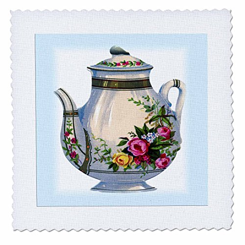 3dRose qs_43813_3 Victorian Floral Teapot-Quilt Square, 8 by 8-Inch
