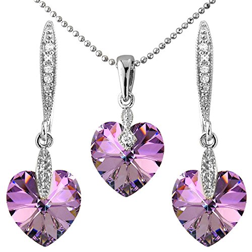 -. Binding : Jewelry -. Brand : Crystal Elegance UK -. Department : womens -. Feature : The full chain length is 40cm. Drop down length measures approximately 20cm / The pink/purple heart measures 1.5cm x 1.5 approx. / Earrings also measure 1.5cm x 1.5cm each approx. / Made from swarovski element crystals. / Gift boxed -. Label : Crystal Elegance UK -. Manufacturer : Crystal Elegance UK -. Model : pink86harset -. MPN : pink86harset -. PartNumber : pink86harset -. ProductGroup : Jewelry -. ProductTypeName : FASHIONNECKLACEBRACELETANKLET -. Publisher : Crystal Elegance UK -. Studio : Crystal Elegance UK -. Title : Pretty Pink Purple Heart Necklace and Earring Set - Silver Tone - Swarovski Elements Crystals - Gift Present for Her