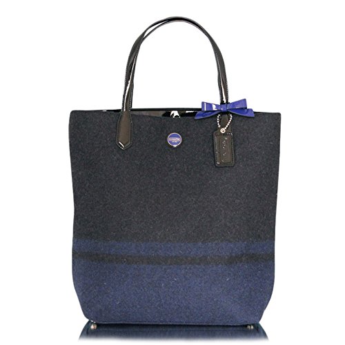 COACH SIGNATURE STRIPE WOOL N/S TOTE - CHARCOAL/COBALT