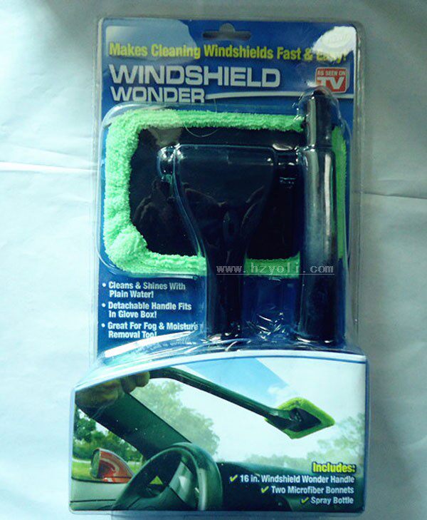 产品配置;一个可以折叠的玻璃刷、两个吸水布、一个喷雾瓶子用来装水清洁玻璃.