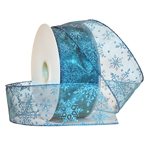 Morex Ribbon Snowflake Wired Sheer Glitter Ribbon, 2-1/2-Inch by 50-Yard Spool, Turquoise