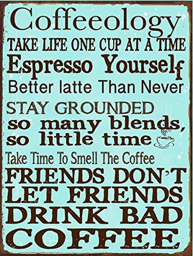 Coffeeology Turquoise Metal Sign, Coffee Lovers, Kitchen Decor, Cafe Decor
