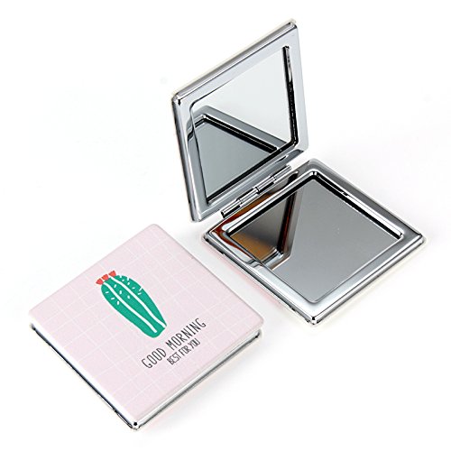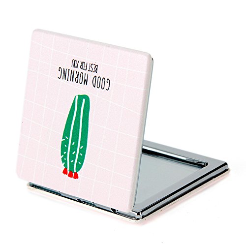 Womens Square Shaped Doodle Design Compact Pocket Mirror Set 2× Magnification + 1× Mirror, Pocket-size, Travel Mirror (CACTUS)