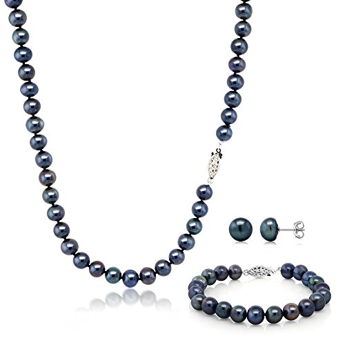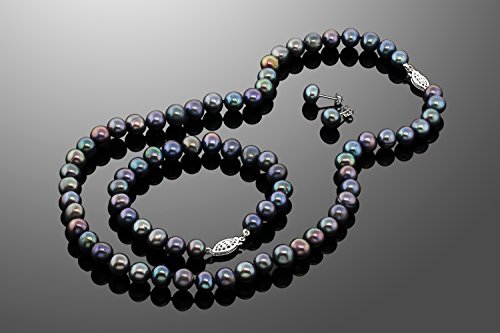 -. Title : 925 Sterling Silver Black Cultured Freshwater Pearl Necklace Bracelet & Earrings
