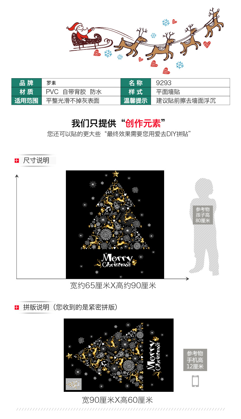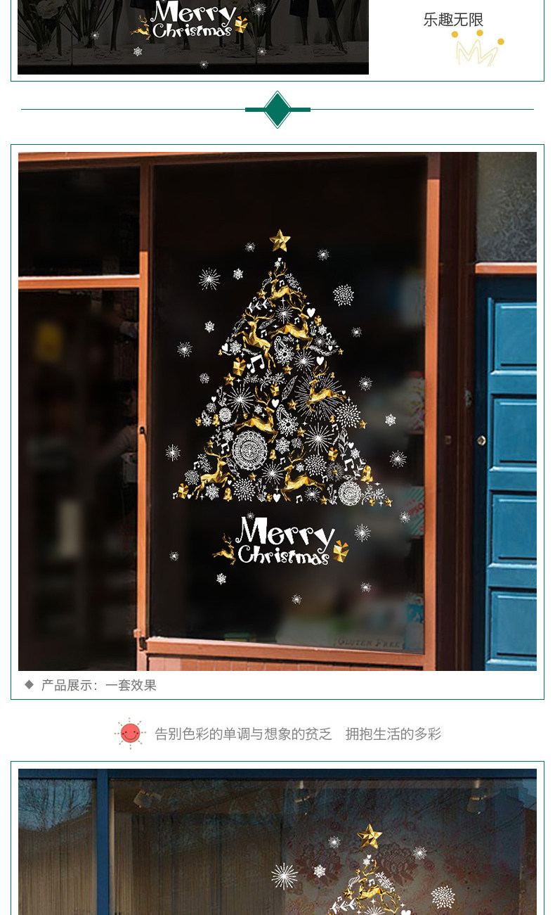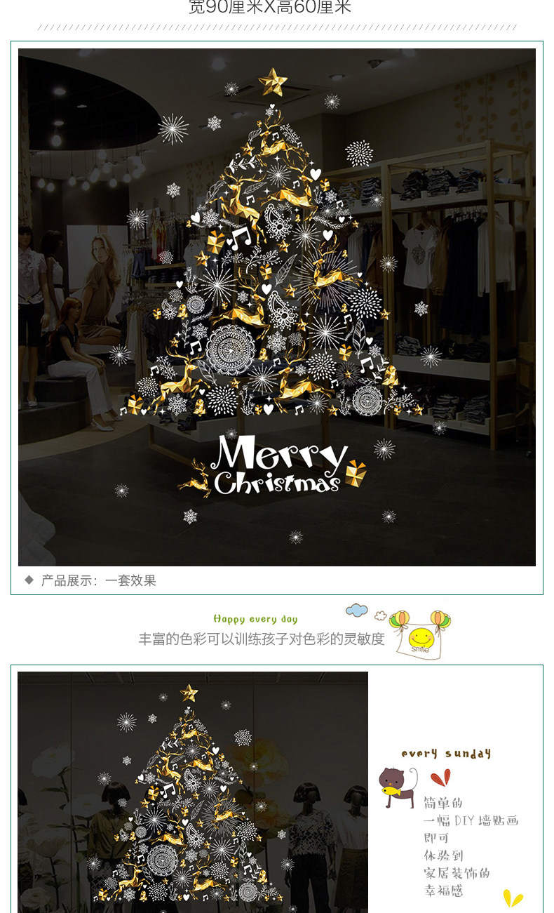 大型圣诞树麋鹿温馨创意装饰贴纸服装店橱窗店铺门面自粘贴纸