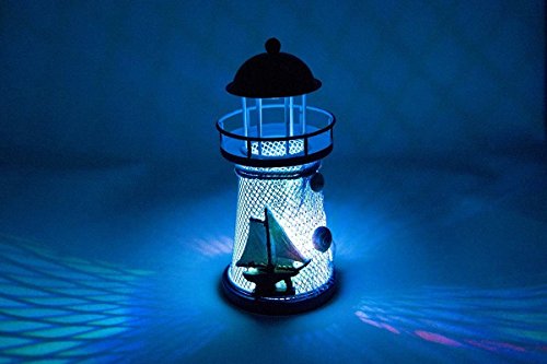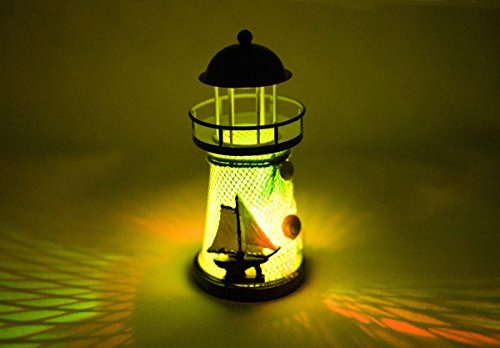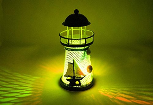 Cute Vintage Handmade Iron Mediterranean Nautical Color Changing LED Lighthouse Lantern Light Lighthouse Wedding Lamp Batteries Included