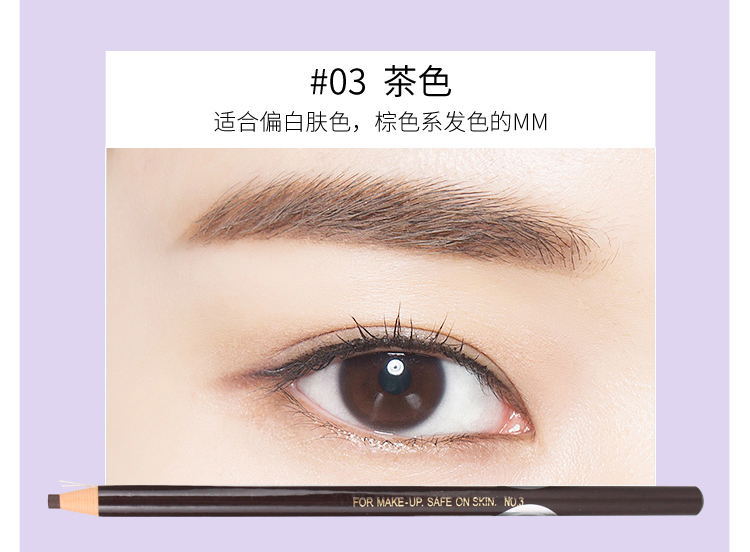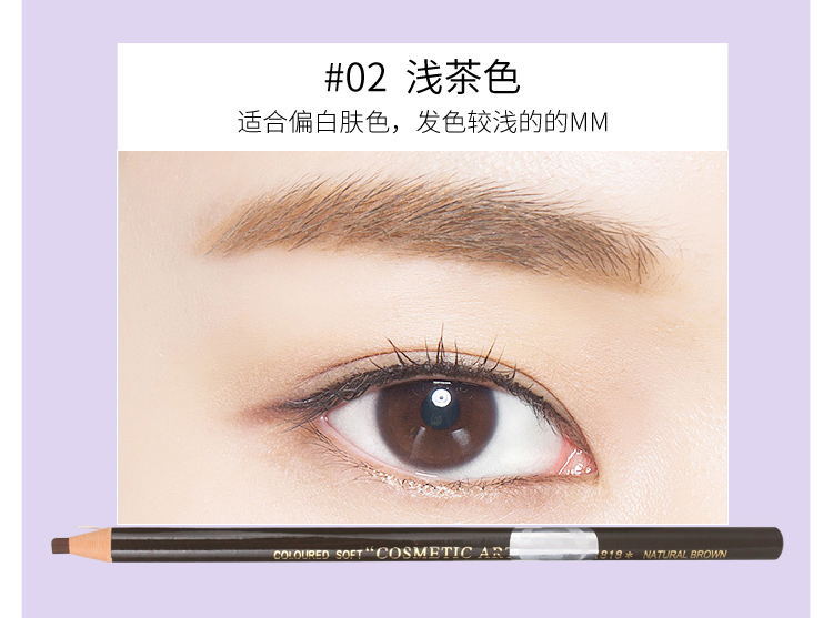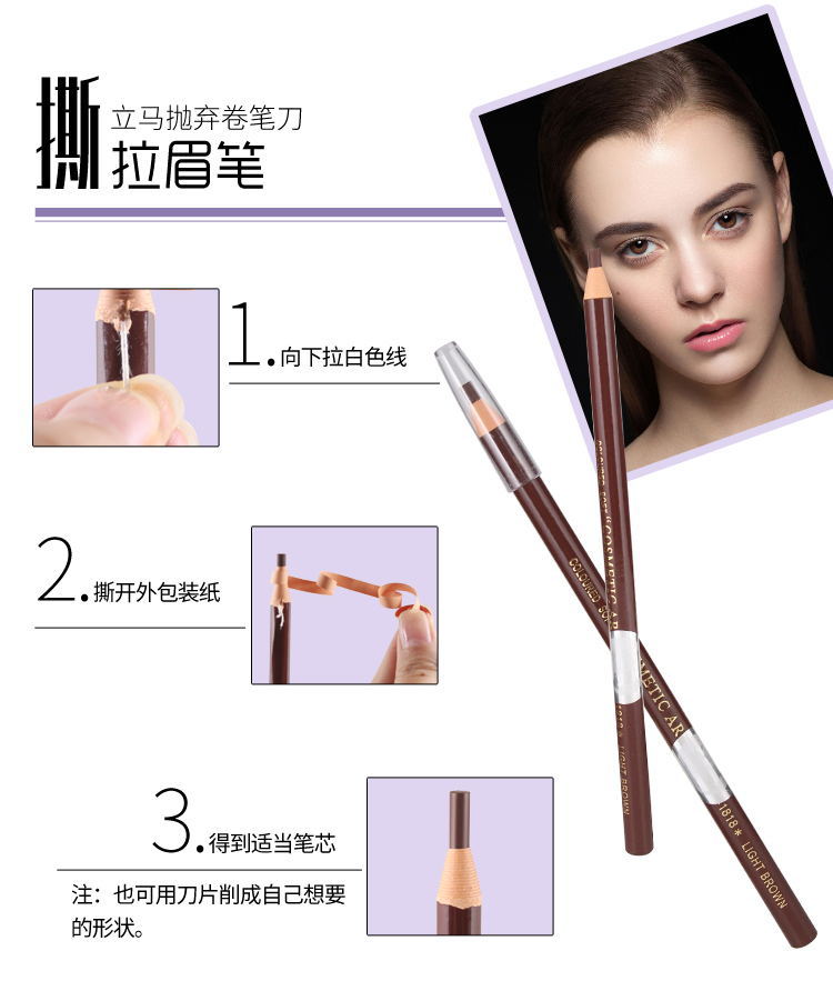 将眉笔削成鸭嘴状,非常容易画,容易上色。使用方便不需卷笔刀,只要一拉即可。