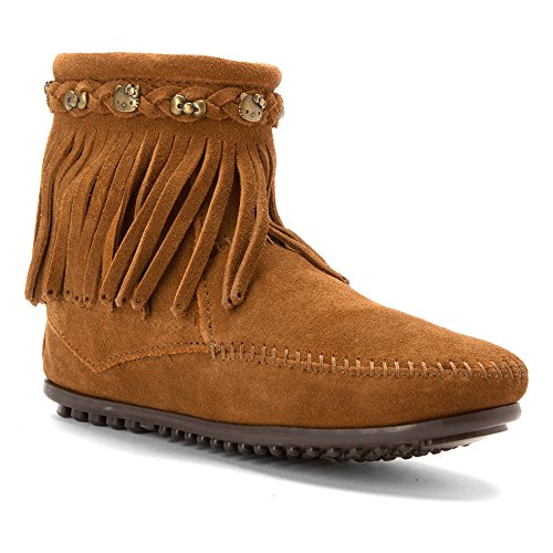 A supercute suede style designed just for you In celebration of Hello Kitty's 40th Anniversary Minnetonka teamed up with Sanrio to design this fun fringe boot for her fans around the world. Handmade from soft, supple suede and adorned with Hello Kitty accents to create a must-have limited edition boot.Feature