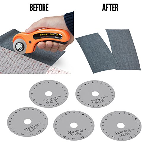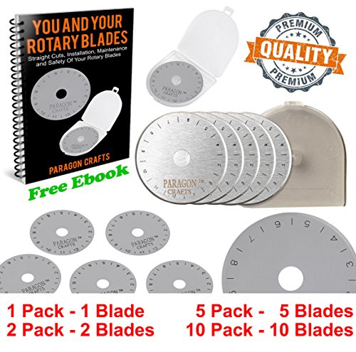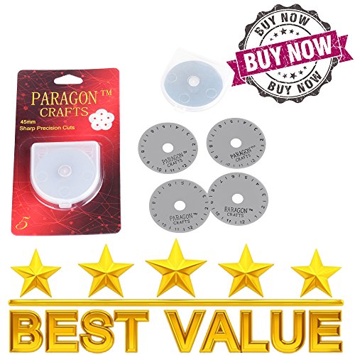 🙋 SKIP FREE GUARANTEE Are you tired of fabric and paper getting caught up in the cutting process? Many rotary cutter blades skip and catch as they cut. Paragon Crafts cutting edge technology allows you to cut straight lines and curves through many types of materials without skipping. Made from high-quality Japanese Steel SKS-7, our blades allow you to use each one again and again . Cut through MULTIPLE LAYERS of fabric or paper with ease. 45mm - 1 Blade in Plastic Case