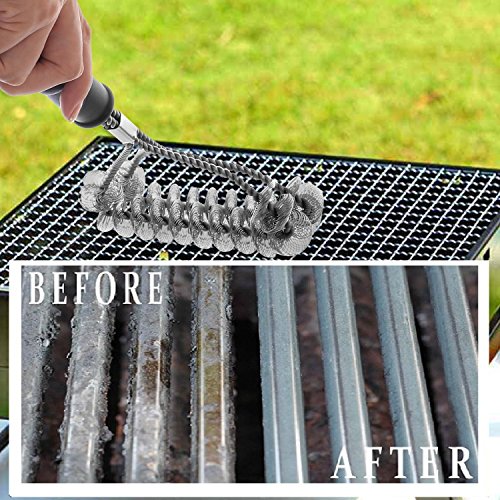 - ✔18" LONG HANDLE : 18" BBQ grill brush keeps your hands away from the heat and use at the perfect angle. Clean every bit of residue with its inovative 360 degree rotator.