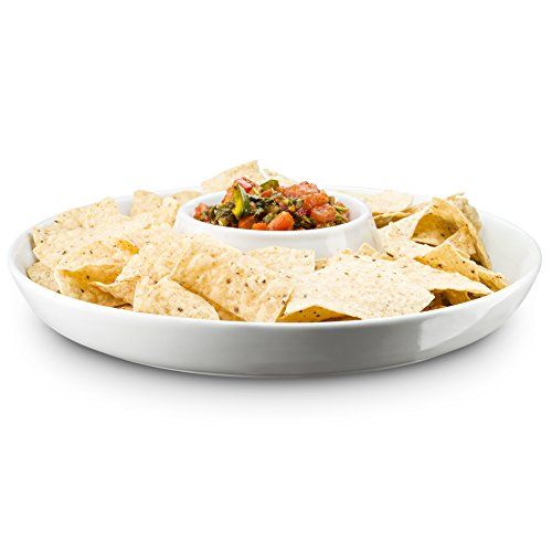 Studio : KooK Publisher : KooK Product Description Delight family and friends with snacks served in the Gracious Dining 13 in. White Chip and Dip Serving Bowl from KooK. Crafted from lightweight, durable ceramic, this large bowl features ample space for chips or crackers with a separate section for dips, sauces and salsa. Both practical and attractive, this white bowl is a delightful addition to your tableware collection. 0