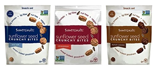 Somersaults Nut Free Vegan Sunflower Seed Snacks 3 Flavor Variety Bundle: (1) Pacific Sea Salt, (1) Dutch Cocoa, and (1) Cinnamon, 6 Oz. Ea. (3 Bags Total)