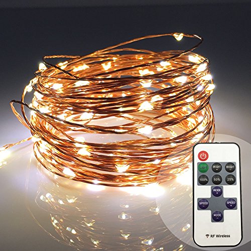 LED string lights Warm White 33ft/10m 100 LED dimmable copper wire starry fairy lights with Remote control - Perfect for Christmas Party Wedding indoor and outdoor decoration (33ft, warm white)